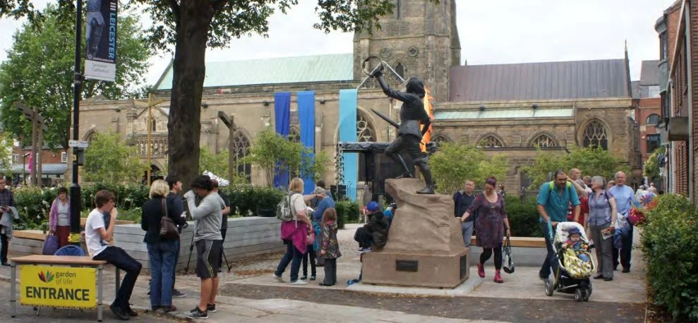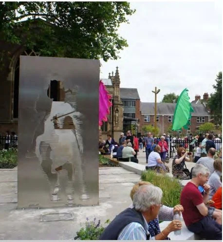 An embedded, stand alone public art piece in Leicester Cathedral Gardens